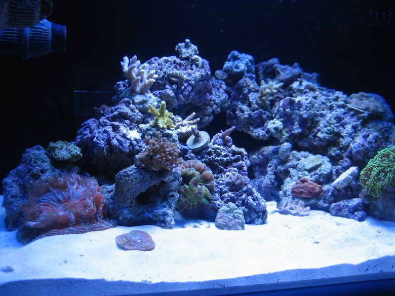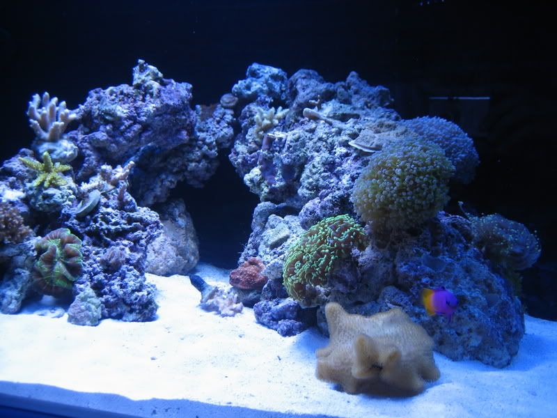 Here's a few pics of the new aquascaping. Not too sure if I like it but oh well. The skimmer is doing okay, I think my tank is way too clean for it to pull anything out. I need more fish.